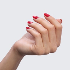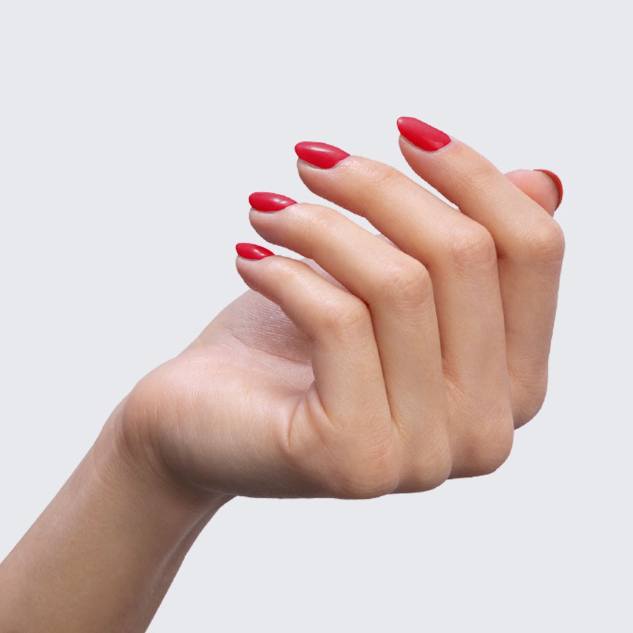 Candy apple red. Medium. Opaque. Cool undertone. Classic.